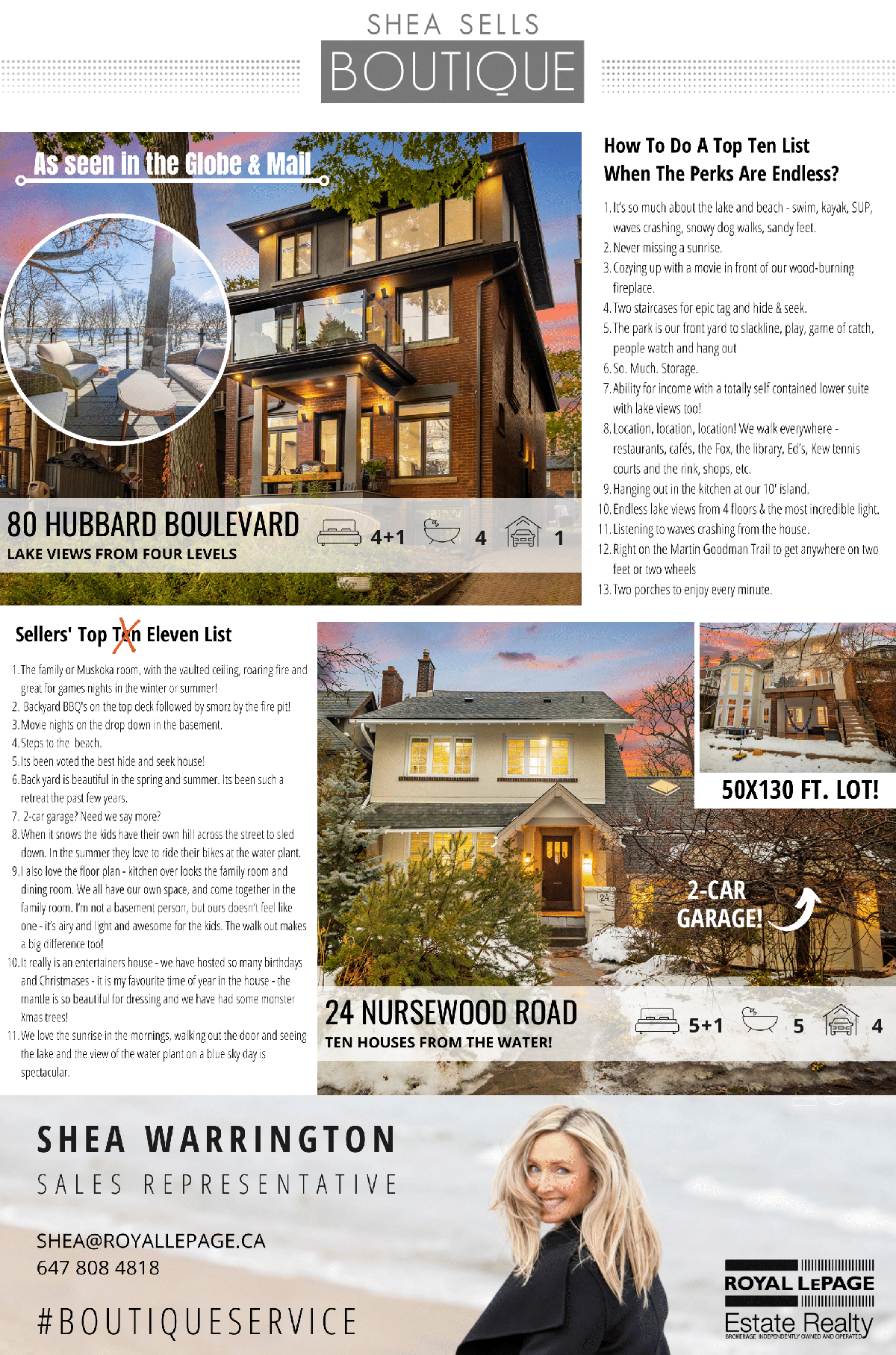 Shea Sells Boutique is proud of the close relationship we share with the local paper, The Beach Metro News, and Shea is the only REALTOR who places regular full-page ads that showcase our boutique services. Beyond that, we have a robust online presence through Facebook, Instagram, and of course, the Royal LePage and BrokerBay networks.